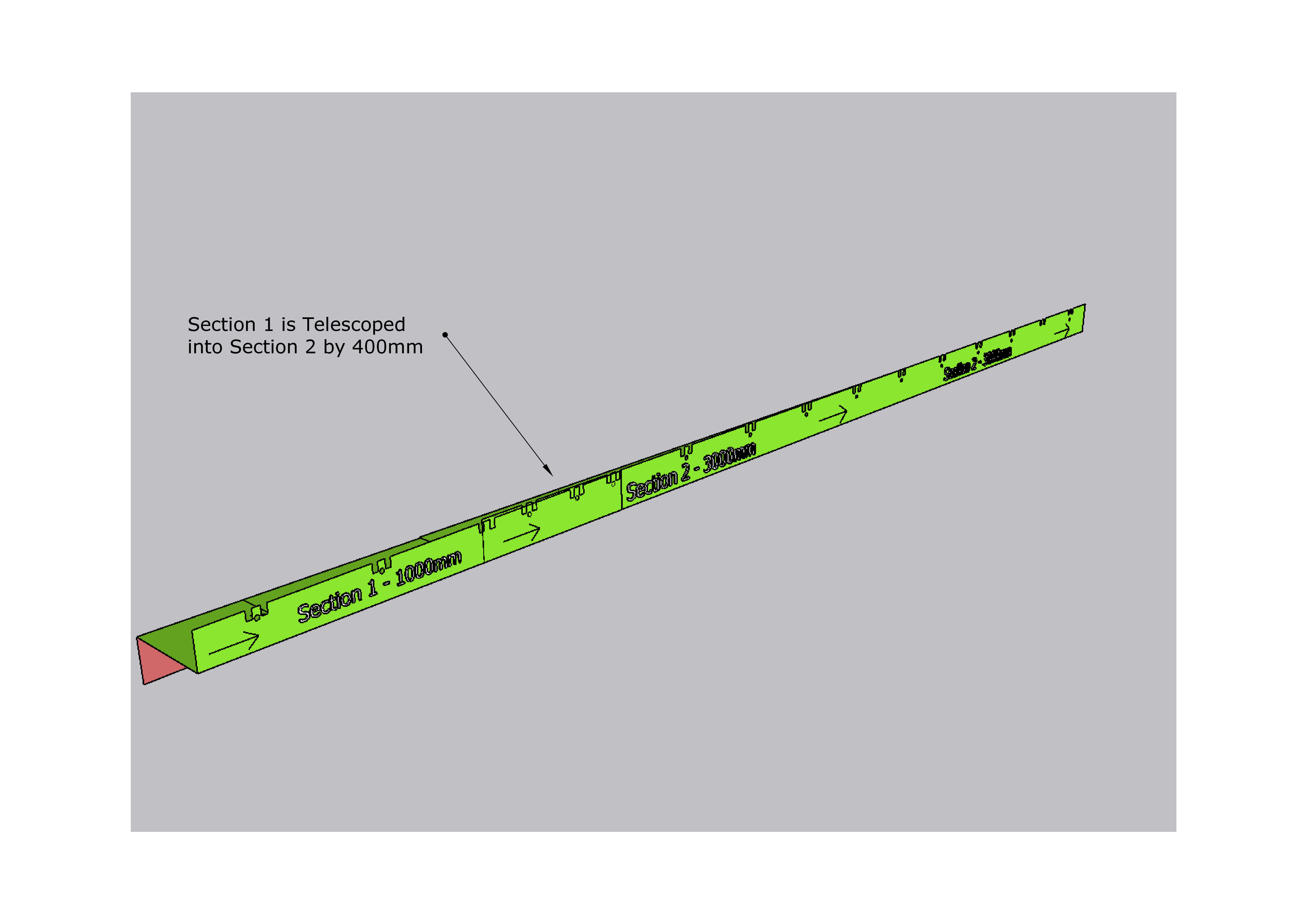 For Example if Run Length is 3600mm the Section 1 - 1000mm & Section 2 - 3000mm Lengths are supplied. Section 1 is then telescoped into section 2 by 400mm (4000mm less 400mm = 3600mm)
