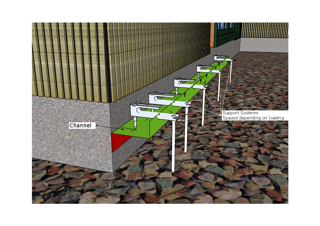 Support Systems are spaced According to Required Loading: Support Systems which are cantilevered and directly supported with a leg can be spaced at 250mm intevals (Vehicle Traffic) or wider intervals where "lighter traffic" will be located. Load Strength where it is required and Significant Cost Savings where "Strength" is not required.
